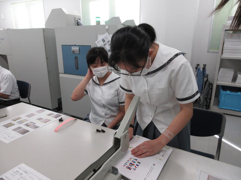 校内実習には1年生全員と2・3年生の数名が参加し、学校を会社に見立て、2グループ(ビルクリーニング・外注作業)に分かれて行います。今日は9日目で少し疲れが見られますが、意欲的に取り組んでいました。