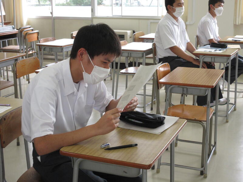 国語の授業では、全学年がたなばた展への出品を目標に書道の学習です。3年生は今日で最後の書道の授業です。お手本をよく見て、文字のバランスを考えながら繰り返し仕上げていました。