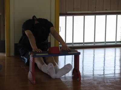 体力テストを行っています。今日は、前屈や握力の測定をしました。