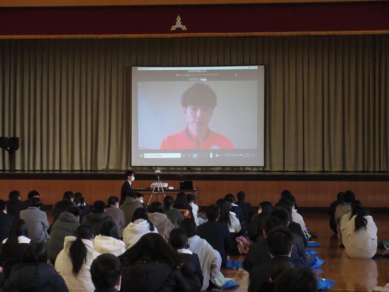 2022年1月18日 17時10分東京オリンピックに出場した山内大夢様(男子400mハードル出場)を講師に講演会を実施しました。はじめに東京オリンピックや競技についてクイズ形式で行ったあと、オリンピック出場までの経緯や競技の魅力についてのお話をしていただきました。選手のお話を聞くことで、オリンピック・パラリンピックへの興味関心を高めることができました。